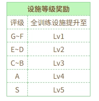当团队等级满足相应要求时,将触发特定事件,进而额外提升所有训练设施的等级(具体内容详见表格)