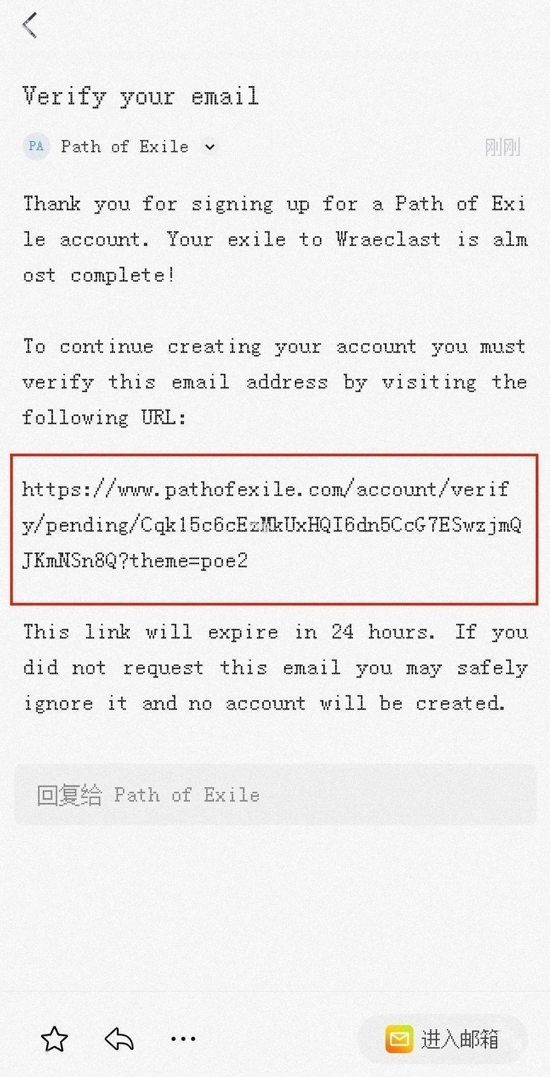 3、这时网站会给邮箱发送一封邮件,打开邮件内提供的网址