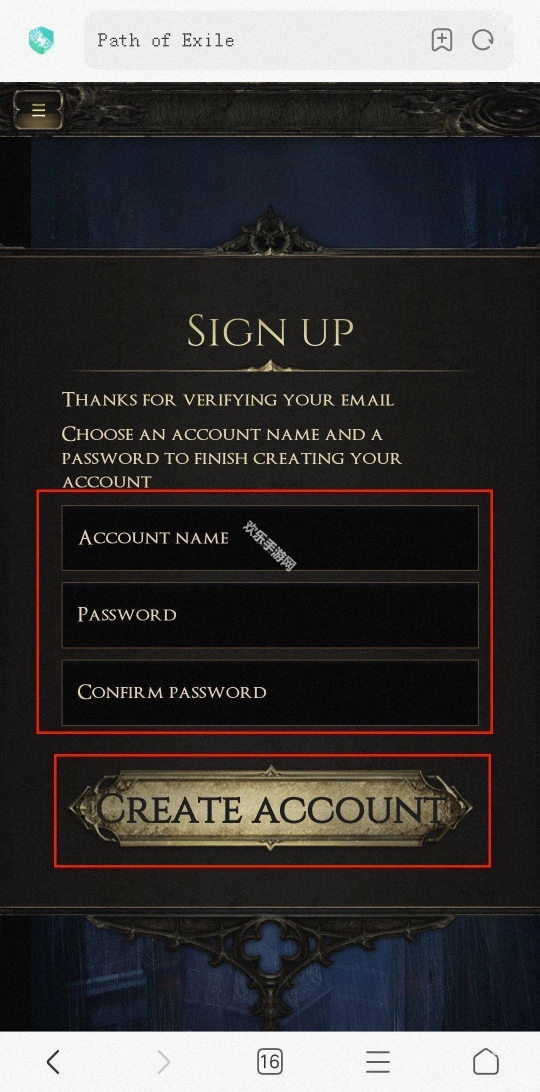 4、输入用户名并设置密码后点击下方的CreateAccount