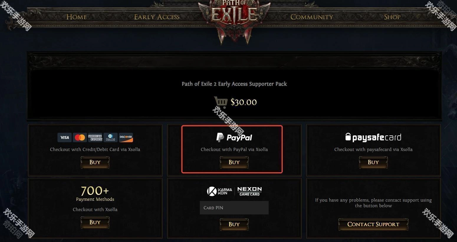 7、进入新页面后向下滑动,直至找到“EarlyAccessSupport”这一项,然后点击其右下方显示的“$30.00”按钮。