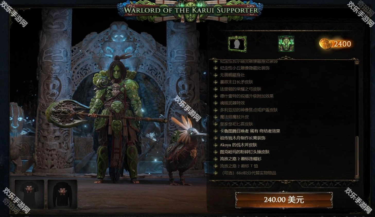 《流放之路2》标志连帽衫:此款连帽衫饰有流放之路2的标志图案,面向卡鲁伊军阀支持者及更高等级的玩家推出。