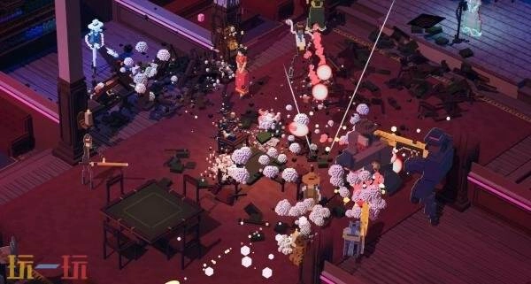 可破坏的体素环境决定了掩体并非长久之计,附带伤害也在所难免。你可以炸穿墙壁、将场地夷为平地,甚至直接掀翻赌桌!基于物理的破坏系统与弹幕地狱式战斗相融合,打造出一场酣畅淋漓的混乱狂欢。