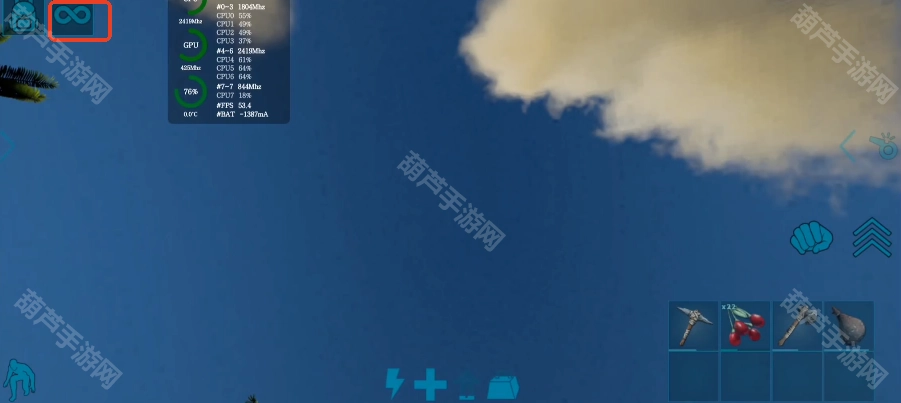 2、在游戏左上方有一个∞图标,点击一下
