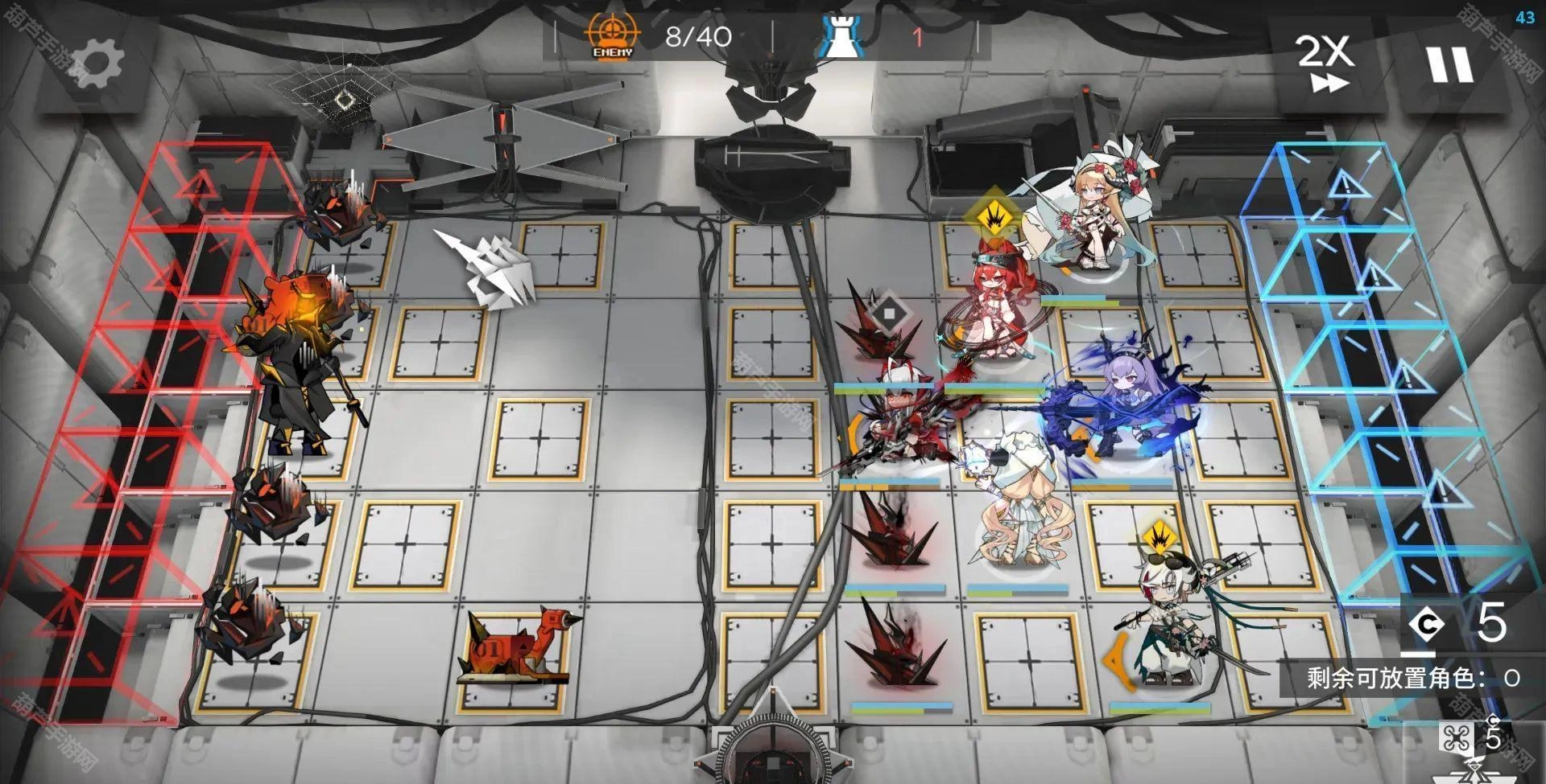 开局用先锋回费,山负责守门,逻各斯开一技能朝左部署,夜莺开治疗技能朝上,阿斯卡纶朝上部署,号角放后排朝左,塞雷娅开二技能。