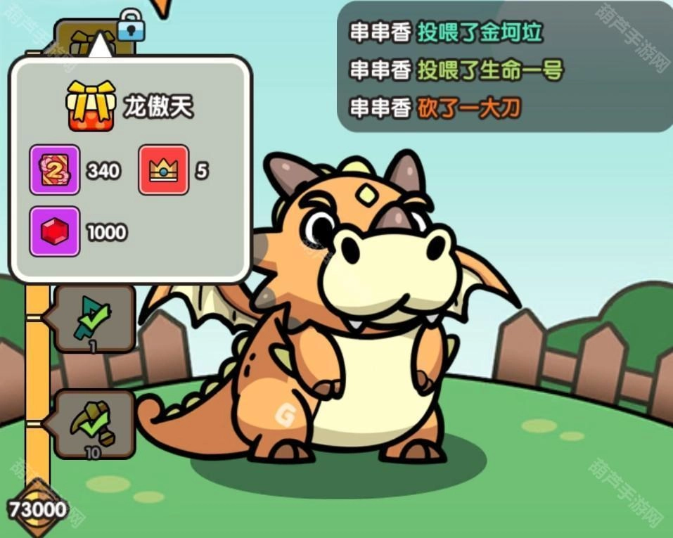 龙傲天:黄金镐头×10、哥布林村庄钥匙×1、经验水晶×10、活动道具×340、宝石×1000、王冠×5