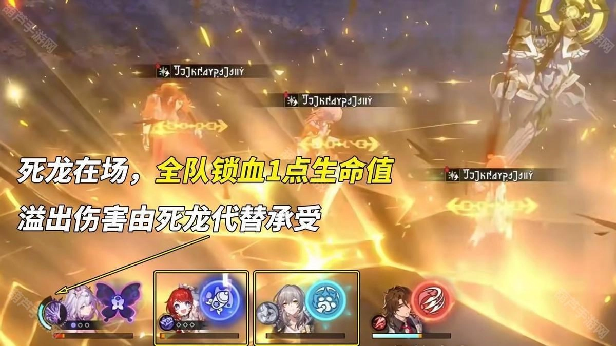 ①死龙在场时,队友血量会锁血1点,后续伤害由死龙代替承受;