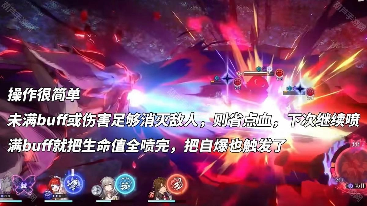 因此操作逻辑很清晰:当遐蝶和死龙均处于满增益状态时,直接消耗100%生命值释放4次喷吐并触发死龙自爆;若未达满增益状态,或敌方剩余血量不多,则调整喷吐次数,之后由遐蝶消耗全队生命值为死龙补充血量,确保死龙下次能进行更多次数的喷吐。
