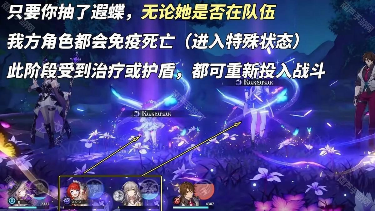 ①触发遐蝶行动状态时,其战技将得到强化效果,此时遐蝶会与死龙协同对敌人发起进攻,同时会扣除全队的生命值,并为死龙恢复生命值;