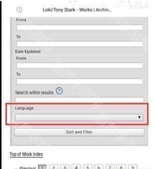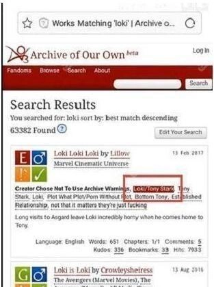 在手机浏览器中输入ao3网址并打开,然后点击图中显示的toki/tonystark选项。