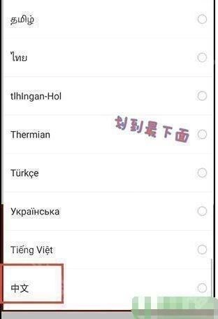 最后我们进到语言设置页面,下拉到底部寻找中文。