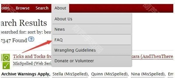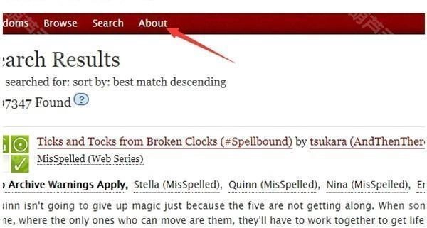 首先我们打开AO3的网页,点击主界面左上方如图所示的“about”按钮。