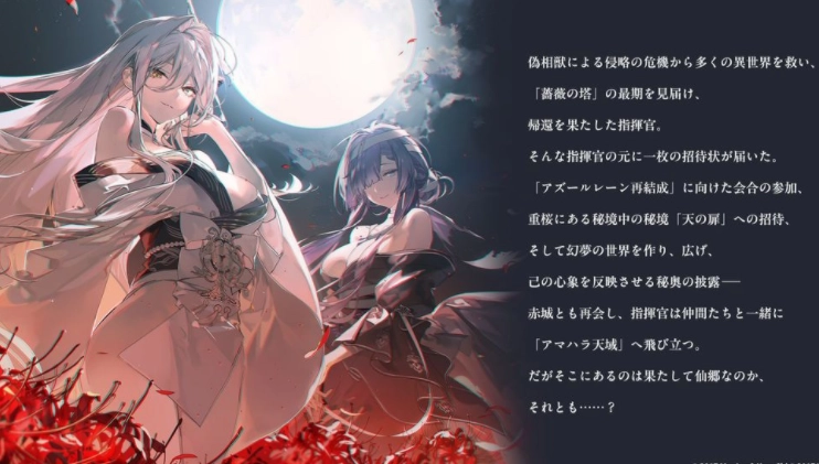 官方称,全新游戏内活动计划在9月12日维护后开启,持续到10月2日。在这次活动的剧情里,指挥官受邀前往重樱秘境中的「天之扉」,参与「碧蓝航线再集合」会议。