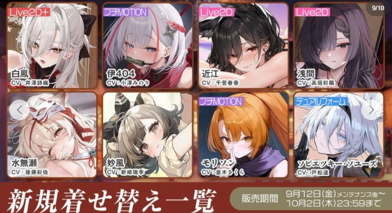 官方会在9月12日和9月19日的更新里分别上线一系列全新换装,这两批换装的贩售时间都截止到10月2日。
