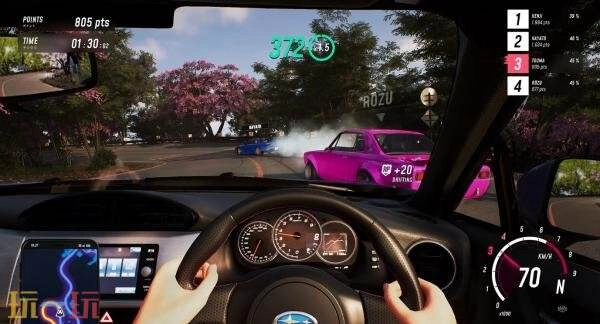 沉浸于虚构的“群玉县”氛围里,它汇集了日本各地的真实景致。这里拥有超250公里极具视觉冲击力的主干道路、独立赛道以及分离的赛事场景,覆盖了蜿蜒山路、乡野小镇与繁华都市街区等不同地貌。游戏中还设有交通系统、动态天气和昼夜循环机制,使探索过程更具真实感与变化性。