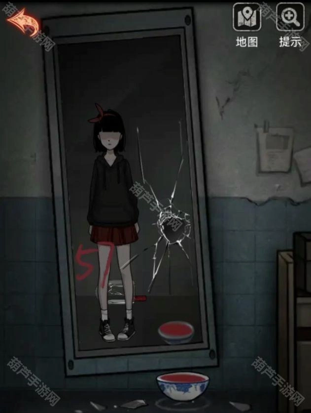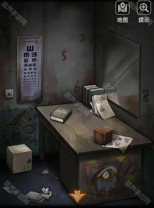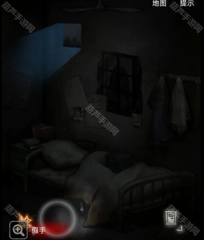 石头下面提示是不做亏心事不怕鬼敲门,这里我们见到鬼的地方就是镜子了,回到最初的2011病房,一砖头,不是,一石头敲碎镜子,从地上捡起镜子碎片,提示碎片很锋利,出门上楼再次回到检查室,用镜子碎片切开棉被拿到里面的钥匙。