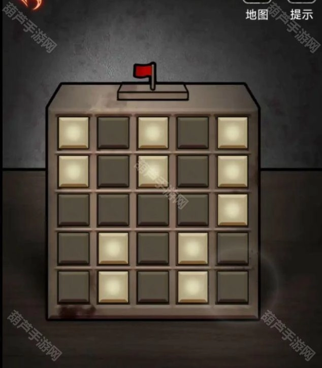 拿到按键后先解锁桌子上的盒子吧,盒子下面有提示求同存异小游戏,所以我们应该拼的就是黑白黑白黑,黑白黑白黑,白白白白黑,白黑白黑白,白黑白黑白,最好是用小格子草纸随手一画就可以了。