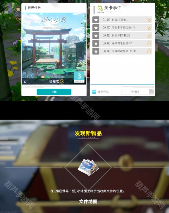 2、湖心小岛:解锁樱庭小地图,即可显示文件所在位置。
