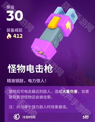 3、使用怪物电击枪后,能够对距离最近的敌人发动电击攻击,不仅会造成高额伤害,若目标为非首领类怪物,还会使其陷入眩晕状态,在应对单个强大敌人时能发挥出最佳效果。