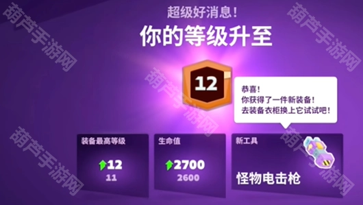 2、当角色等级达到12级时,装备等级上限与生命值将得到提升,并且会获得工具怪物电击枪作为奖励。