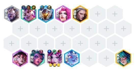 8级时补充阿罗拉或佛耶戈,针对刺客阵容调整英雄站位(让萨勒芬妮贴墙放置以防范切入)。