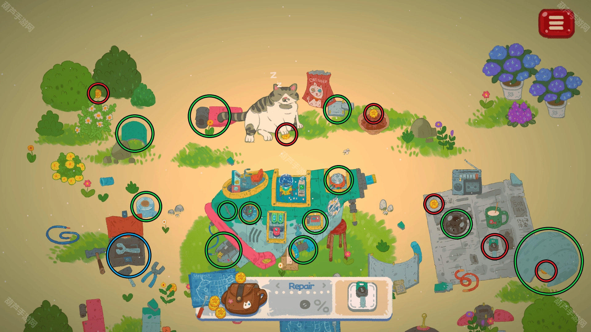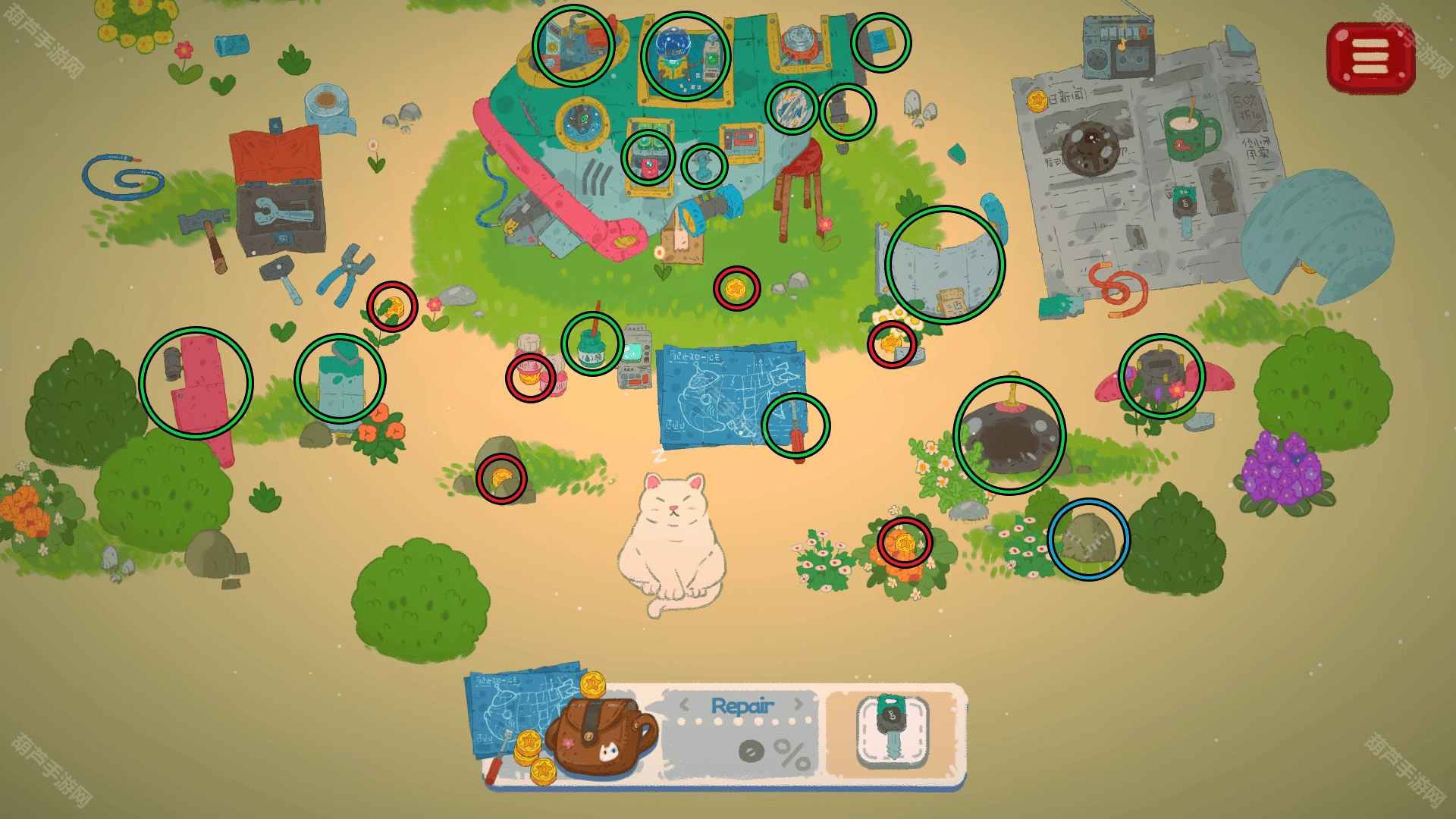 ①红圈:部件、硬币、星星和道具清单