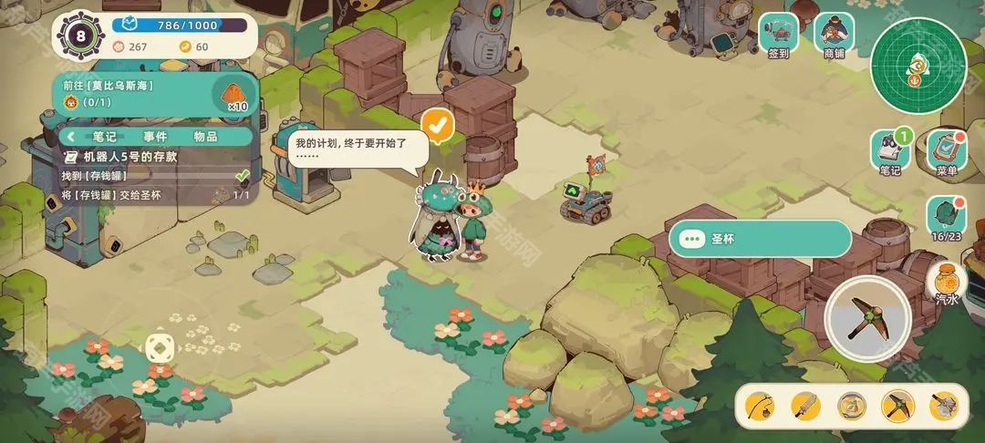 1、首先在抵达岛屿后,我们要找到圣杯并与它展开对话。