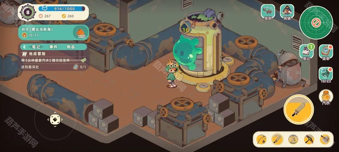 13、有个装置被史莱姆占据了,你可以用易燃凝胶或者剑来攻击它。