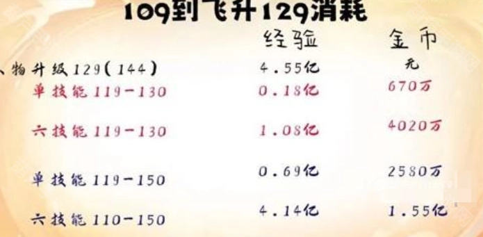 1、飞升前09需要准备最基本的经验应该是6.9亿经验和7900W储备或者现金。