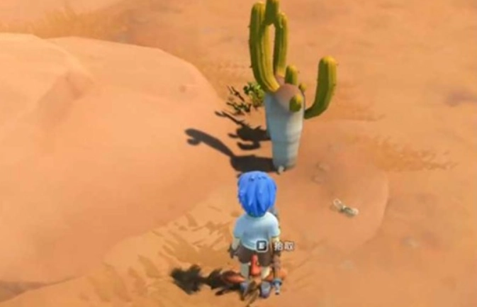 第二个宝箱也在这片骨架区域,不过它被沙子埋住了,没办法直接看到。这时候得用上游戏里的特殊工具——羽毛掸子。玩家得先做出羽毛掸子,再对着埋宝箱的沙堆使用,宝箱才会显现出来,这样才能打开它。羽毛掸子的图纸能在沙石镇时光的商会商店里买到。