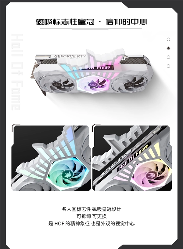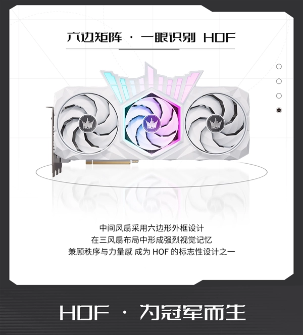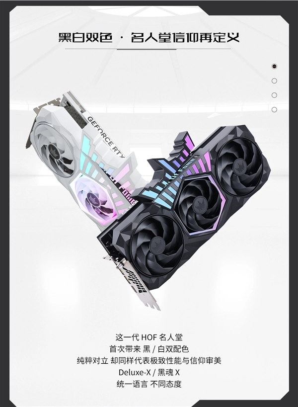 在新一代HOF显卡上,影驰首次以黑白双版本的形式呈现名人堂外观体系。
