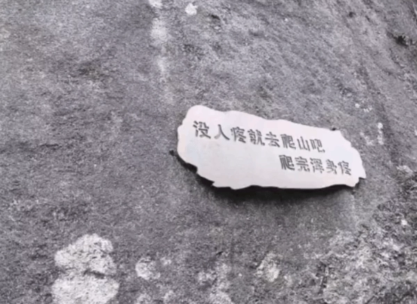 近日,有博主发布视频称,自己在华山徒步登山的过程中,偶然发现登山梯一侧的铁桩上写着带有“嘲讽”意味的文字。