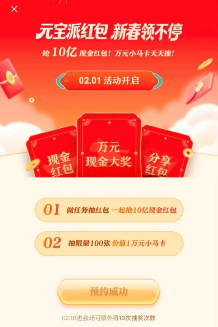 4、提示 “预约成功” 即完成,2 月 1 日自动解锁额外抽奖机会。