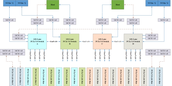 支持多主机、端到端与非透明传输模式,能够无缝适配数据中心、超低延时AI服务器、高性能计算以及企业级存储等各类场景应用。