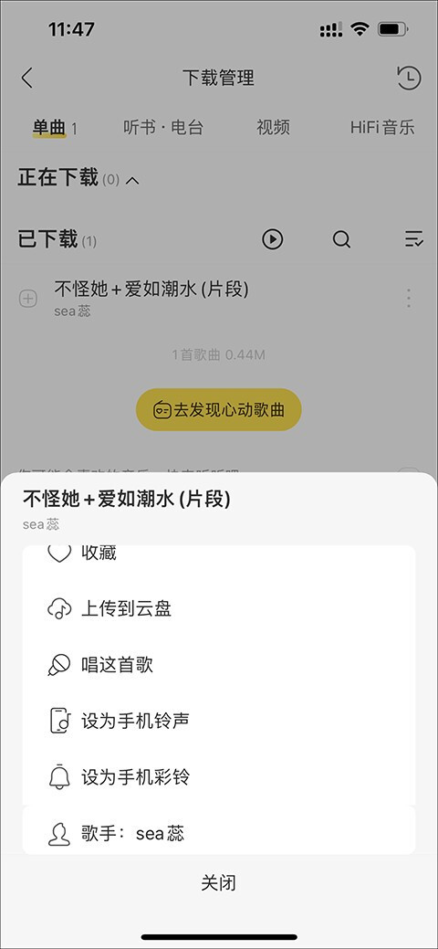 歌曲下载完成后,点击【我的】,再选择【我的下载】。