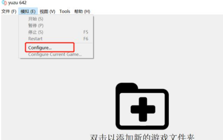 首先打开设置界面,接着双击启动Yuzu模拟器,在模拟器窗口上方的菜单栏中找到“模拟”选项并点击,随后在弹出的下拉菜单里选择“Configure”配置选项。