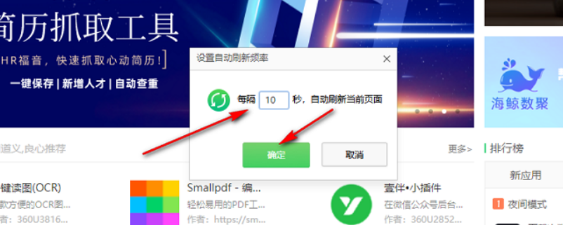 最后在弹出的窗口里,设置好合适的刷新时间,点击“确定”按钮保存就可以了。