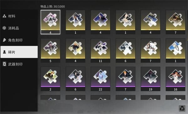 在卡池的保底资源箱里,玩家也能直接选择刻印宝箱。比如,当刻印卡池的累积抽取次数达到六十次时,就能获得一次保底宝箱,也就是刻印重现箱,玩家从这个宝箱中也能拿到SSR级别的刻印。另外,在“灵骸”副本中,玩家每击败一个敌方单位,都能稳定获取一定数量的刻印碎片,集齐碎片后,也可以合成刻印重现箱子。