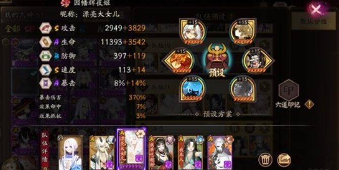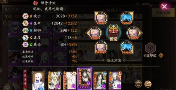 3.腹肌的御魂可以选择输出类的,像针女、心眼这类都可以用。这里选择带地藏,主要是为了避免操作失误,提升阵容的容错率,地藏御魂的属性搭配也可以采用攻攻暴的组合。