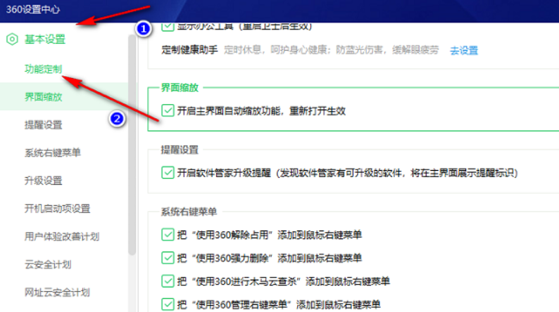 在弹出的窗口中,点击左侧栏里的【基本设置】>【功能定制】