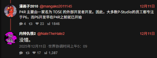 爆料人NateTheHate2在推特上发布了新的爆料内容。当被问及《女神异闻录6》是否陷入开发地狱时,他明确表示否认,同时认同“《女神异闻录4 重制版》主要由外包公司Tose(东星软件)负责开发,P-Studios的大部分员工都在专注于《女神异闻录6》的研发工作”这一说法。