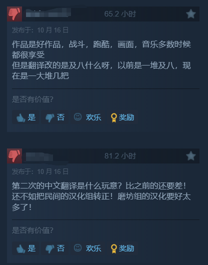 不少玩家觉得,新版翻译非但没改进旧版那些让大家不满的地方,反而更糟糕了,简直是从“小问题”变成了“大麻烦”。