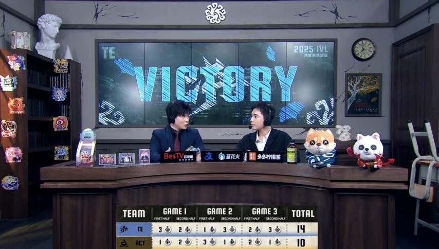 最终,TE以2胜1平0负(14:10)的比分击败ACT,获得本场比赛的胜利。