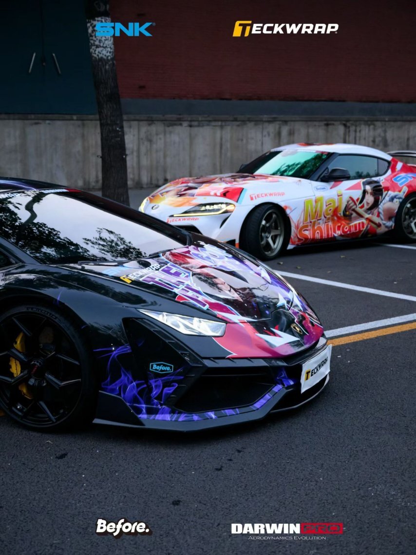 SNK的人气角色不知火舞与八神庵的限定“痛车”也惊艳登场,成了吸引玩家停下脚步合影留念的热门焦点。