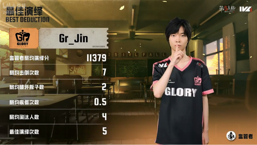 成都Wolves的求生者阵营选用了杂技演员、空军、大副与气象学家,禁用角色为“跛脚羊”;Gr战队的监管者选手Jin则选定歌剧演员,其禁用列表包含先知、古董商、幸运儿和病患。