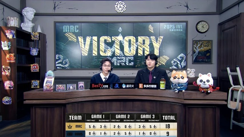 最终,MRC以2胜0平1负(18:9)的比分击败DOU5,获得本场比赛的胜利。