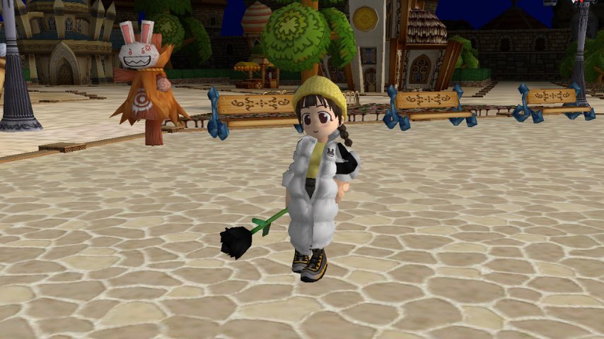 冬天自然是必须有一套羽绒服的。这套长款羽绒服不仅能覆盖面积大,保证腿部的温度,哈比兔的刺绣图案可爱又俏皮,编织的帽子温暖又舒适,是《希望OL》冬天非常不错的选择。