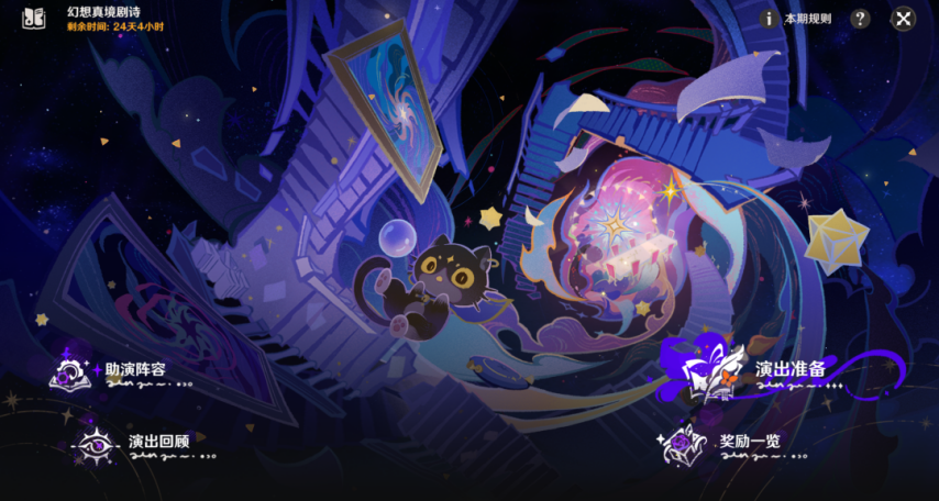 幻想真境剧诗最显著的特点在于,每期活动里,除了特邀角色外,仅能选用3种元素类型的角色,而且这些角色必须达到70级及以上才有资格参与战斗,要是符合条件的角色数量不足,甚至连开启挑战的权限都没有。另外,每个角色的出场次数被限制为2次,并且登场的先后顺序是通过随机抽签来决定的。
