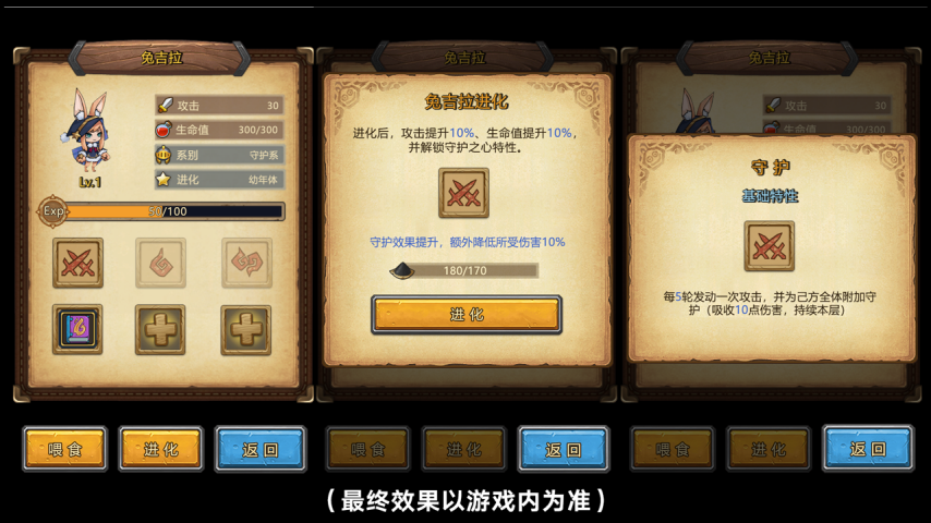 每只契约兽拥有2次进化机会,能掌握3种不同的契约技能;在出战过程中,每击败一名敌人,契约兽就能获取经验并提升等级。