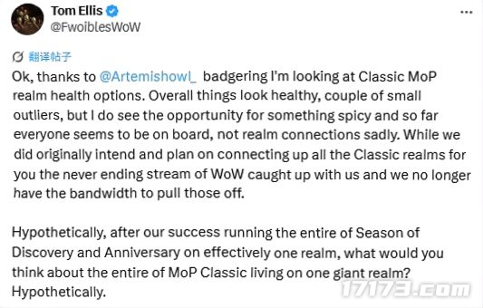 对此,暴雪也看不下去了,直接出手发蓝贴官宣会在9月23日对外服的MOP怀旧服进行合服。