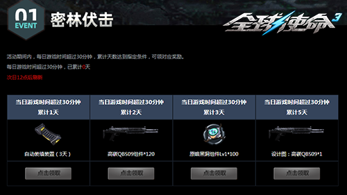 活动期间,玩家每天在PVE或PVP模式中游玩满30分钟,就能解锁阶梯式奖励。累计1天可获得自动装填装置,提高武器换弹效率;累计2天领取枪械组件,帮助装备升级;累计3天还能兑换主动装置组件,增强战术技能。而坚持5天的玩家将直接得到设计图:高碳高碳QBS09,打造专属强力武器。这一设置既鼓励玩家保持战斗节奏,又通过实用补给为后续挑战打好基础,让每一分钟的战场奋斗都更有价值。